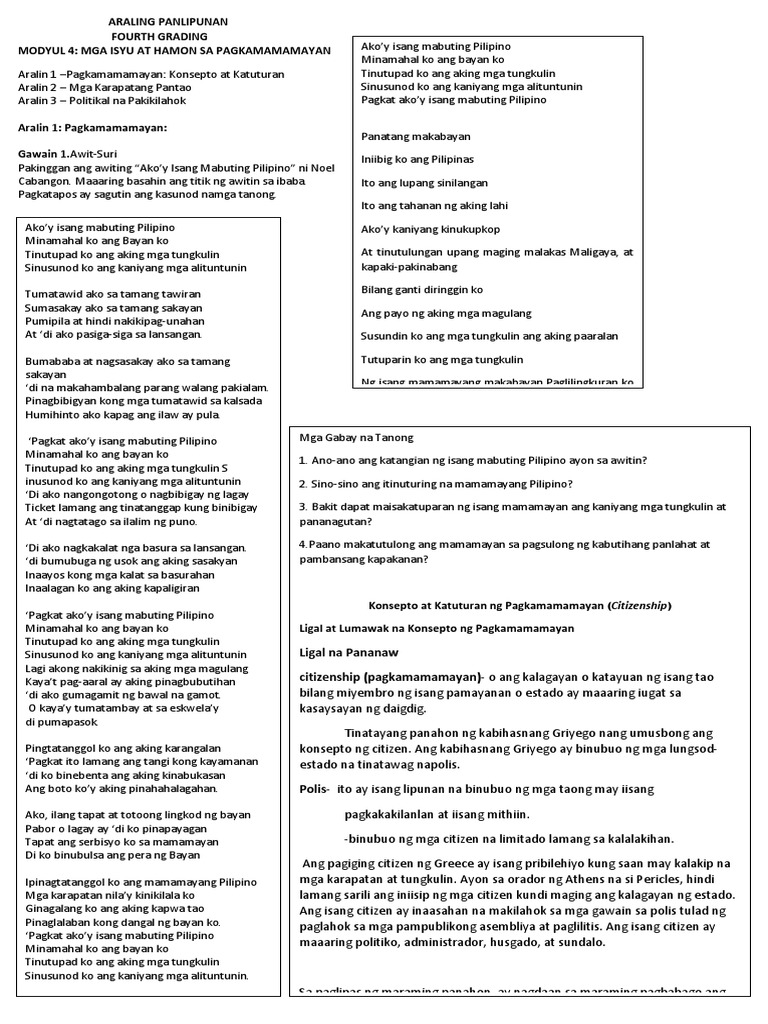 Katagingian ng mabuting pamahalaan grade 4 araling panlipunan. 0 Save Share Copy and Edit Edit. Ap 4 lm q1. Maari siyang hindi pumasok araw-araw dahil.