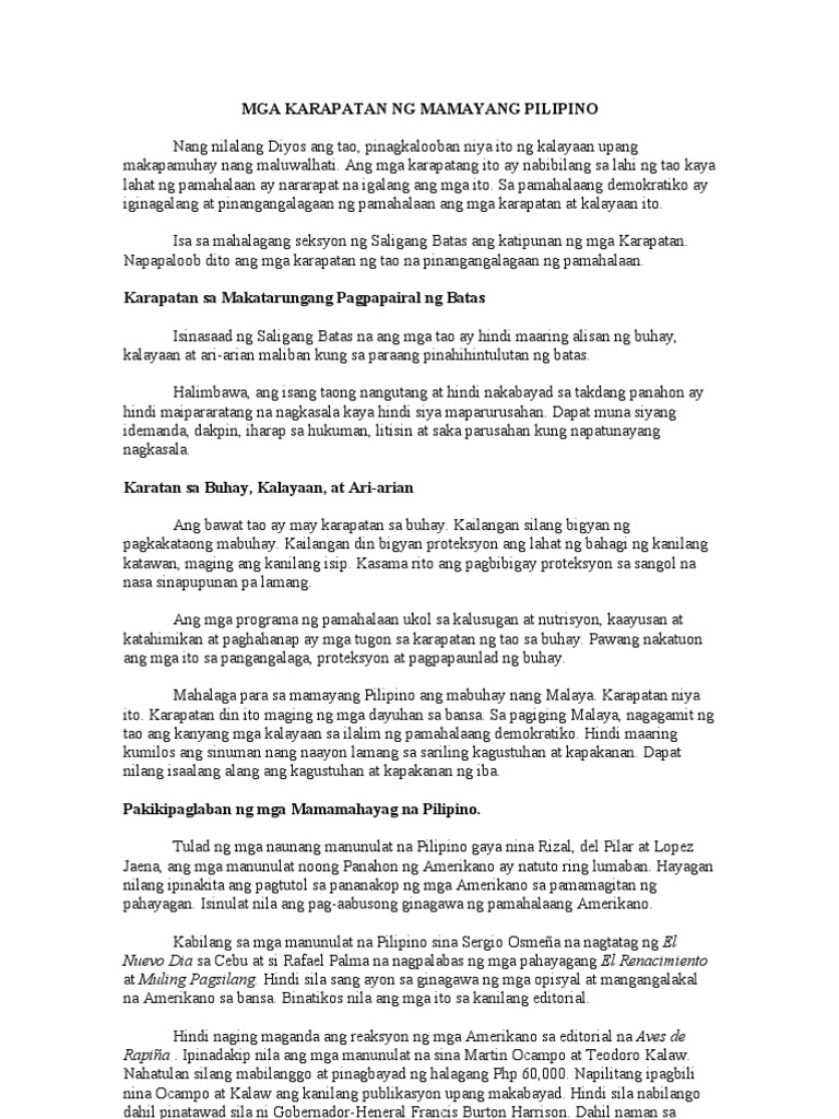 Mga Karapatan Ng Mamayang Pilipino Pdf