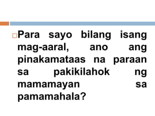 F AYON SA DEMOCRACY INDEX 2016. Hindi na mangangailangan ng mahabang araw ng paghahanda ng mga kagamitan at mga pantulong ang guro. Ang mabuting pamumuno o pamamahala ang susi sa pagiging matagumpay ng isang komunidad.