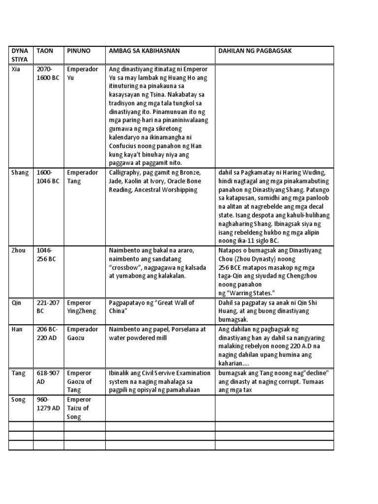 Pagkatapos ay ilagay sa sumusunod na. Para sa karagdagang kaalaman ukol sa dahilan ng pagbagsak nga dinastiya ng Tsina bisithain ang mga links.